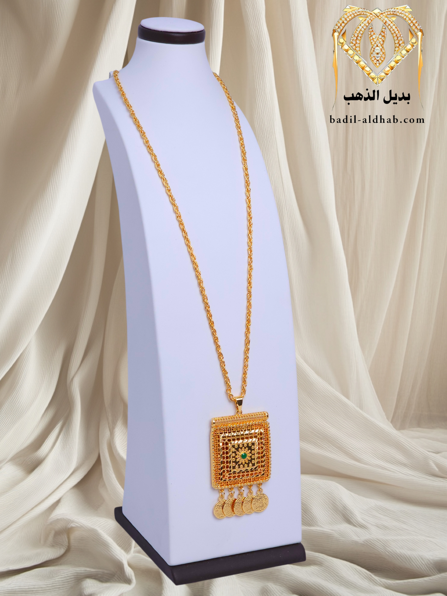 1. عقد الهبه الشرقي طويل مع حبات من الجنيهات مطلي بماء الذهب و يمنحك لمسة فخمة وراقية لك مع الحفاظ على لمعان وبريق يدوم لفترة طويلة.