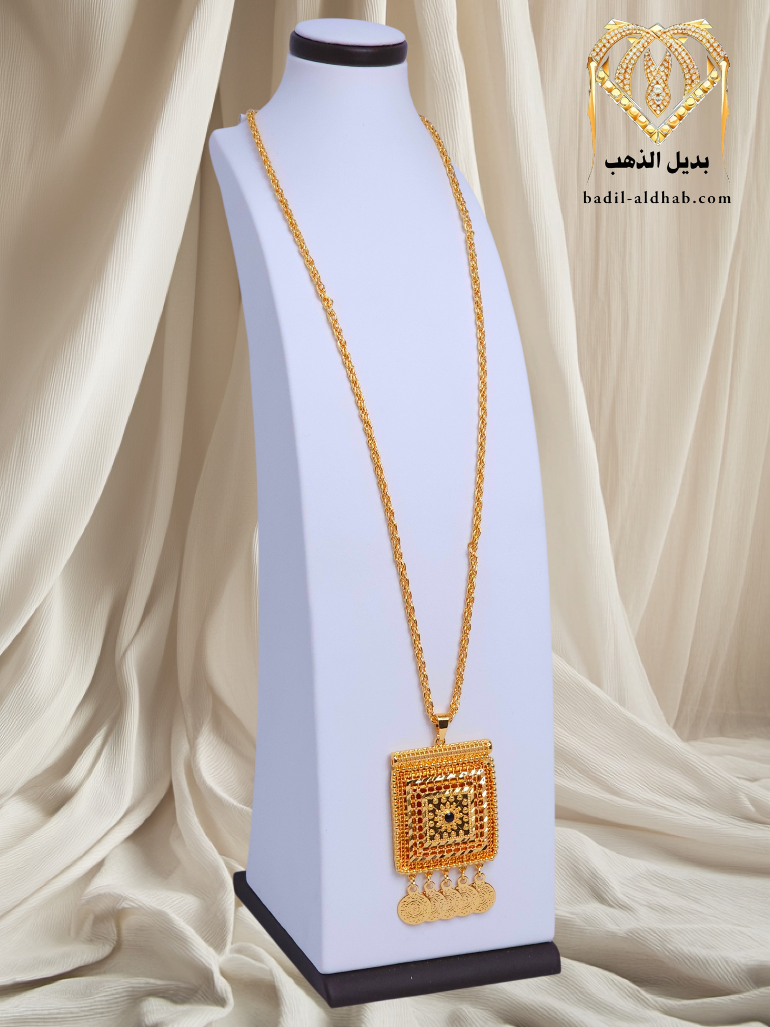 عقد الهبه الشرقي طويل مع حبات من الجنيهات مطلي بماء الذهب و يمنحك لمسة فخمة وراقية لك مع الحفاظ على لمعان وبريق يدوم لفترة طويلة.