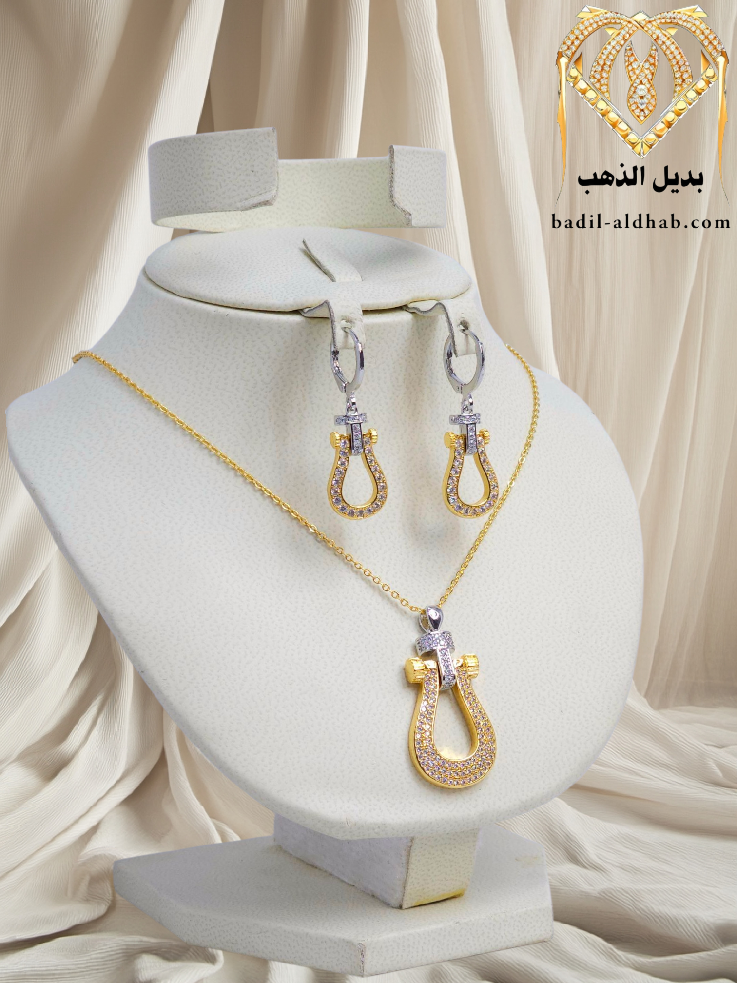 عقد وحلق مطلي مطابق للذهب عيار ٢١